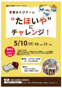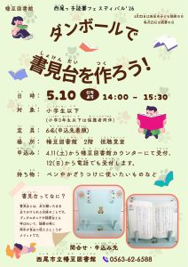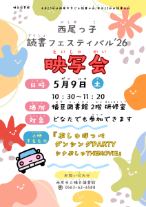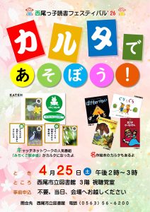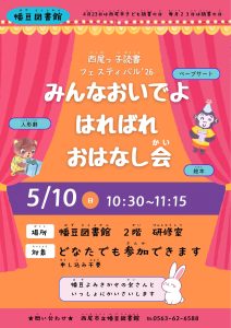 西尾市子ども読書の日を記念して、各図書館で子ども向けの楽しいイベント「西尾っ子読書フェスティバル’26」を開催します。