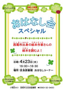 毎月23日は「読書の日」、4月23日は「西尾市子ども読書の日」です。